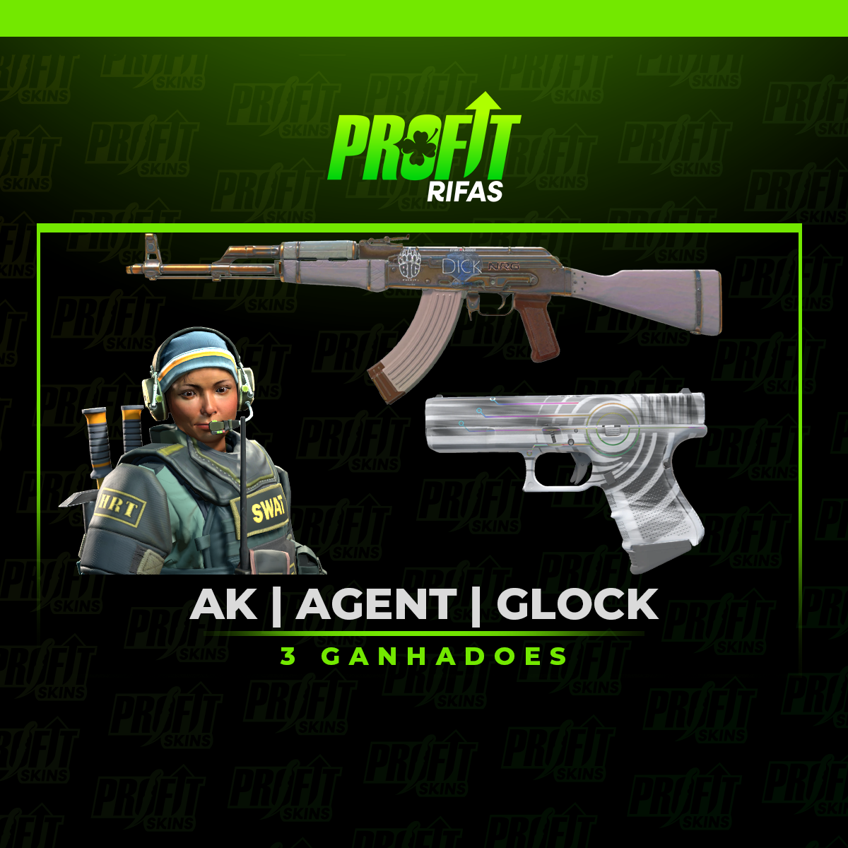 Esses são os prêmios no sorteio AK | AGENT | GLOCK.