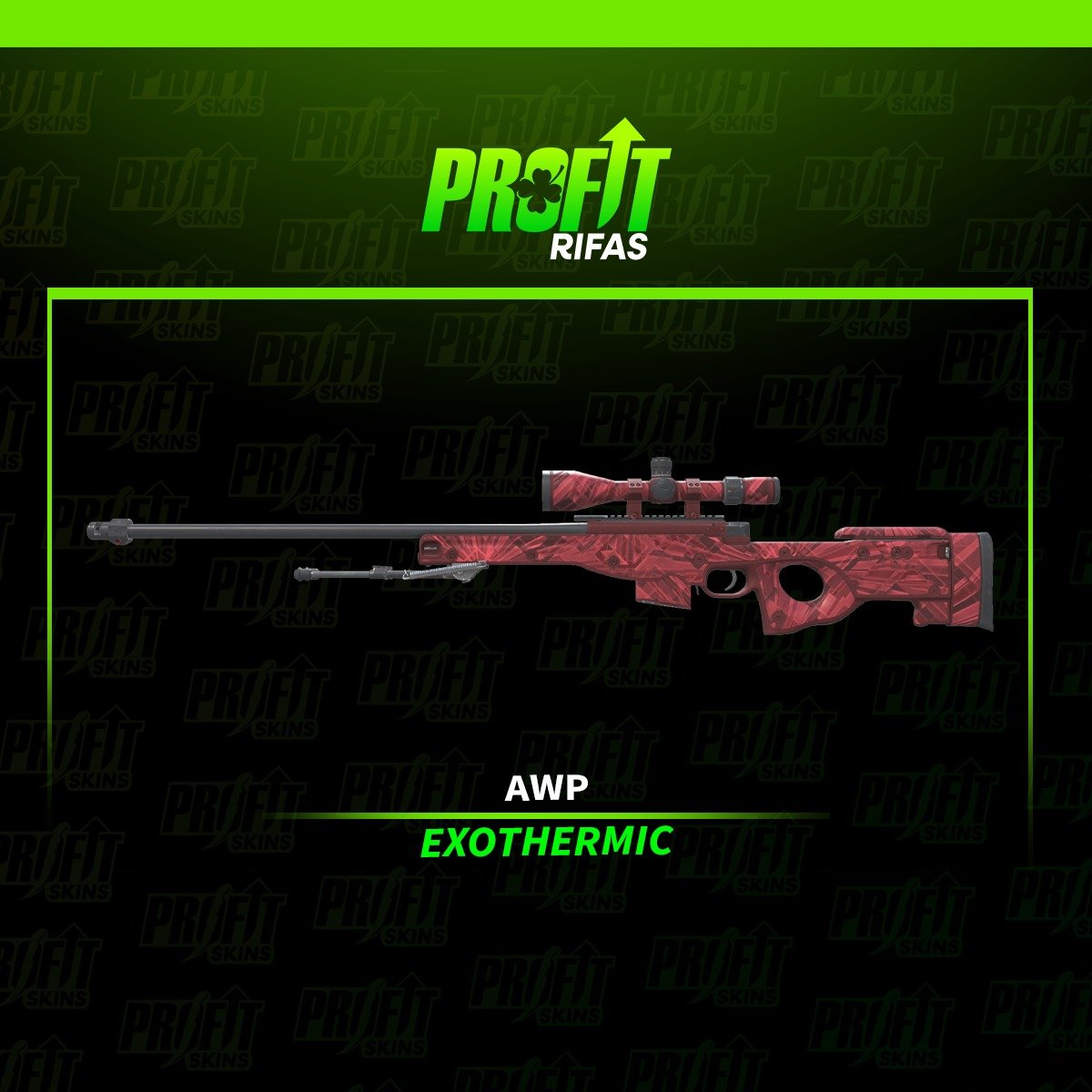 🥇AWP | Exothermic (Field-Tested)Valor: R$ 95,00💰 A cada R$ 30,00 gastos no site de RIFAS, você ganha 1 número na roleta do SORTEIO MENSAL!