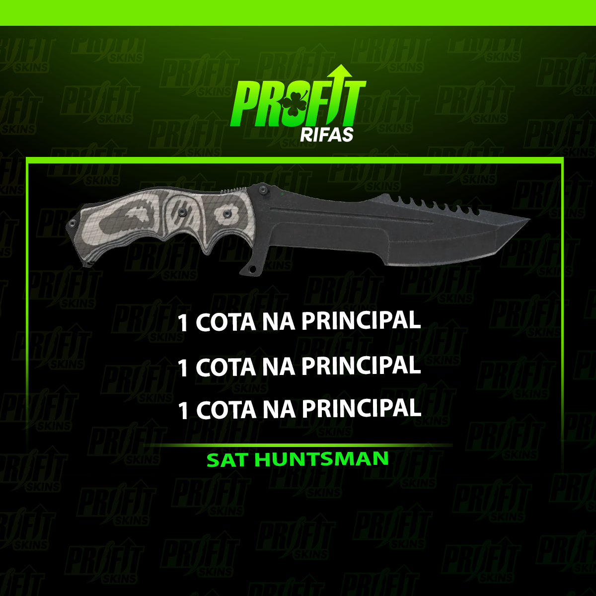 🥇SAT Huntsman Knife | (Field-Tested)Valor: R$580,00💰 A cada R$ 30,00 gastos no site de RIFAS, você ganha 1 número na roleta do SORTEIO MENSAL!
